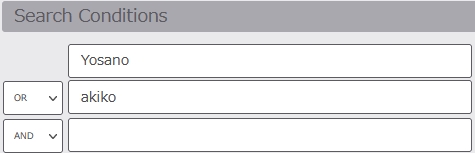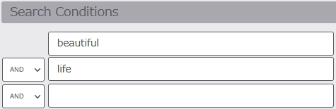 When search terms are typed to two or more items and "AND" is selected, materials that agree with both terms are searched.