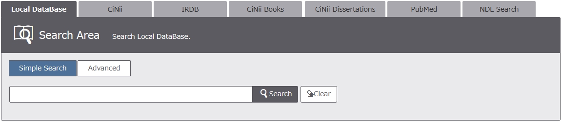 - Various data bases are accessible data bases to serve (CiNii Books・CiNii Research・IRDB) of providing of National Institute of Informatics.