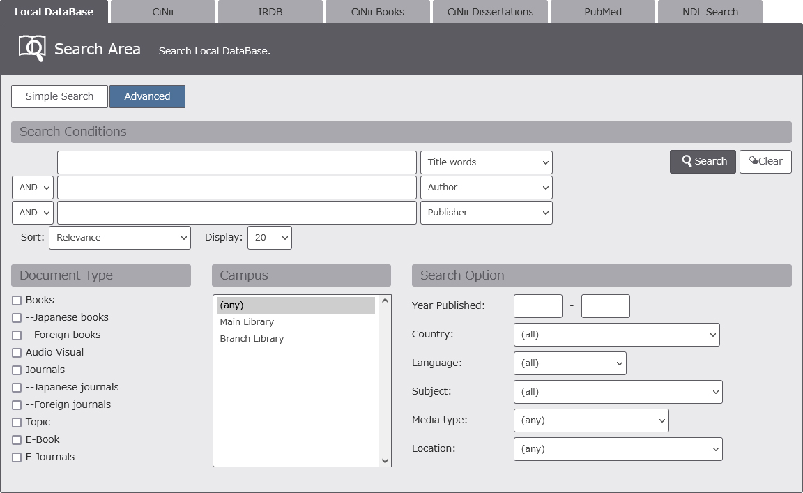 - Local Database is the online catalog databases of academic materials (books, serials and audio visuals) in the collections of your university.